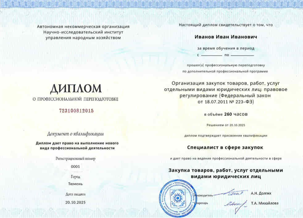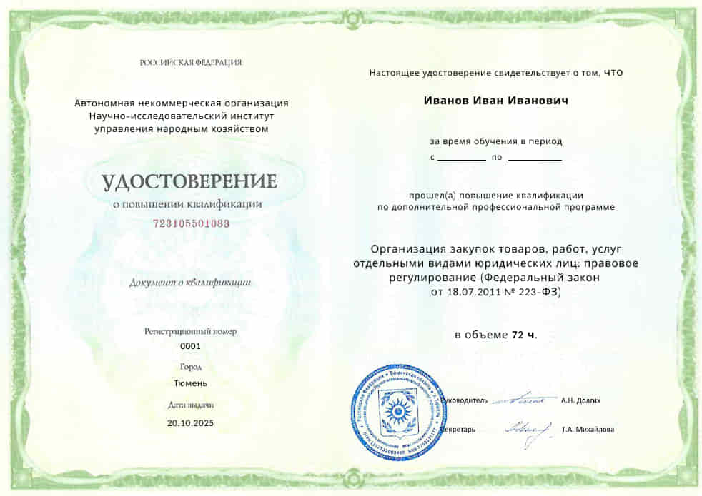 Программа повышения квалификации «Организация закупок товаров, работ, услуг отдельными видами юридических лиц: правовое регулирование (Федеральный закон от 18.07.2011 № 223-ФЗ)» (далее – Программа) разработана в целях осуществления единой государственной политики в области профессиональной подготовки специалиста по управлению, размещению, исполнению и обеспечению государственных заказов.